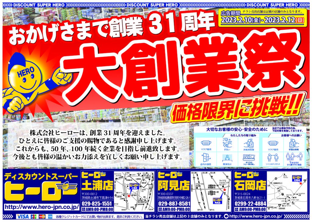 「大創業祭!」2月10日(金)~2月12日(日) ヒーロー土浦店・阿見店・石岡店にて開催!