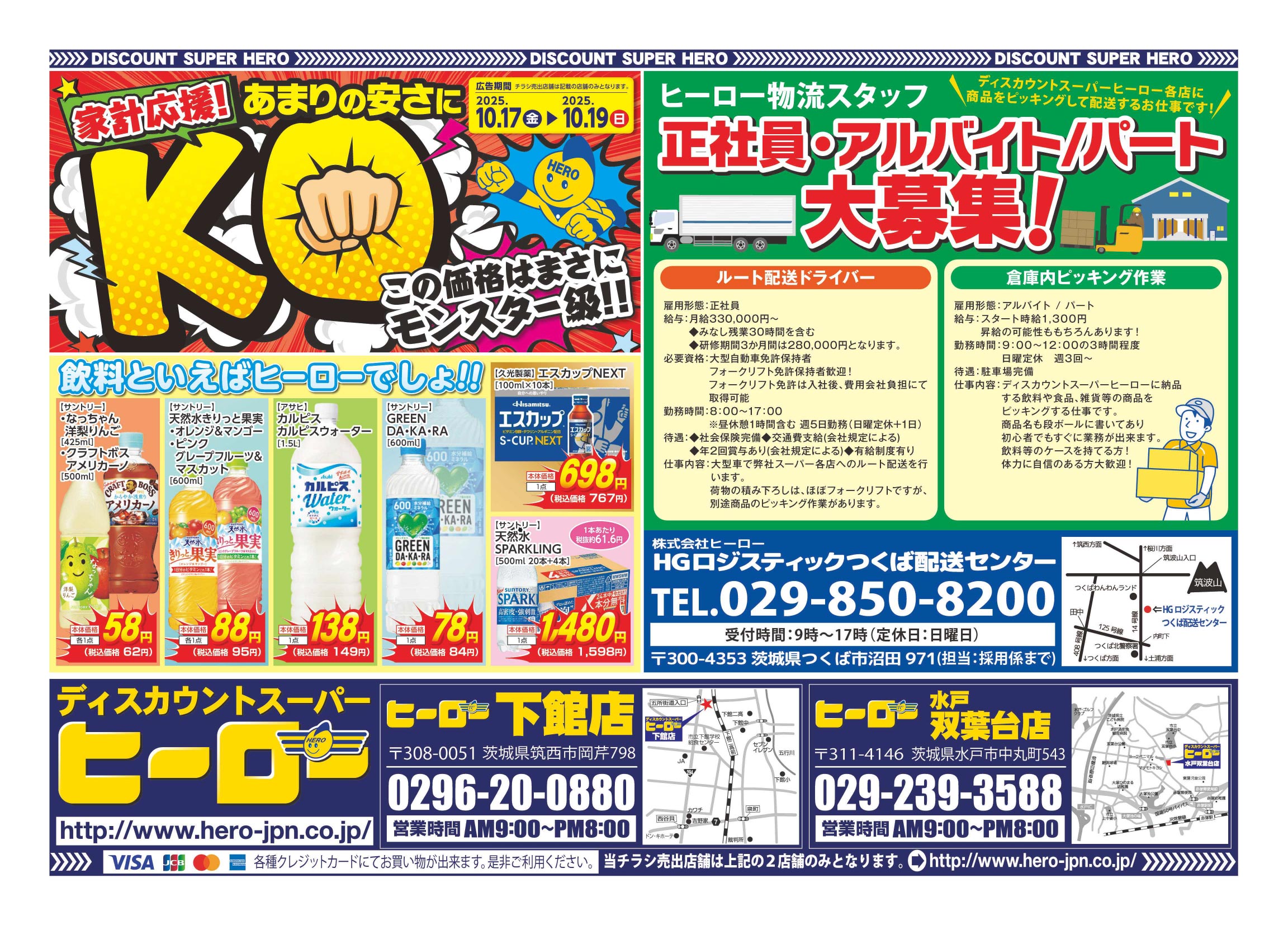 「家計応援!あまりの安さにKO」10月17日(金)~10月19日(日) ヒーロー下館店・水戸双葉台店・笠間店にて開催!