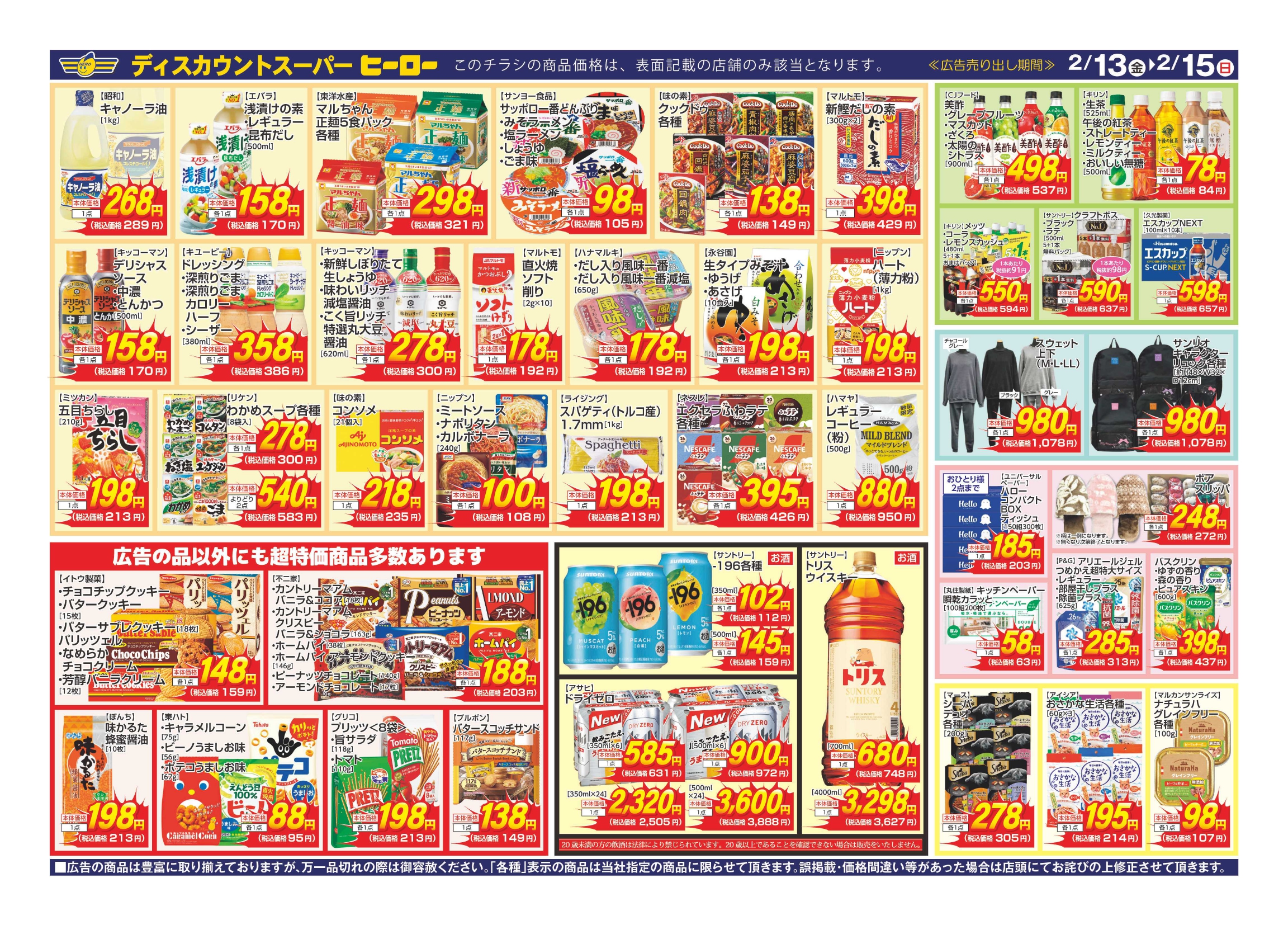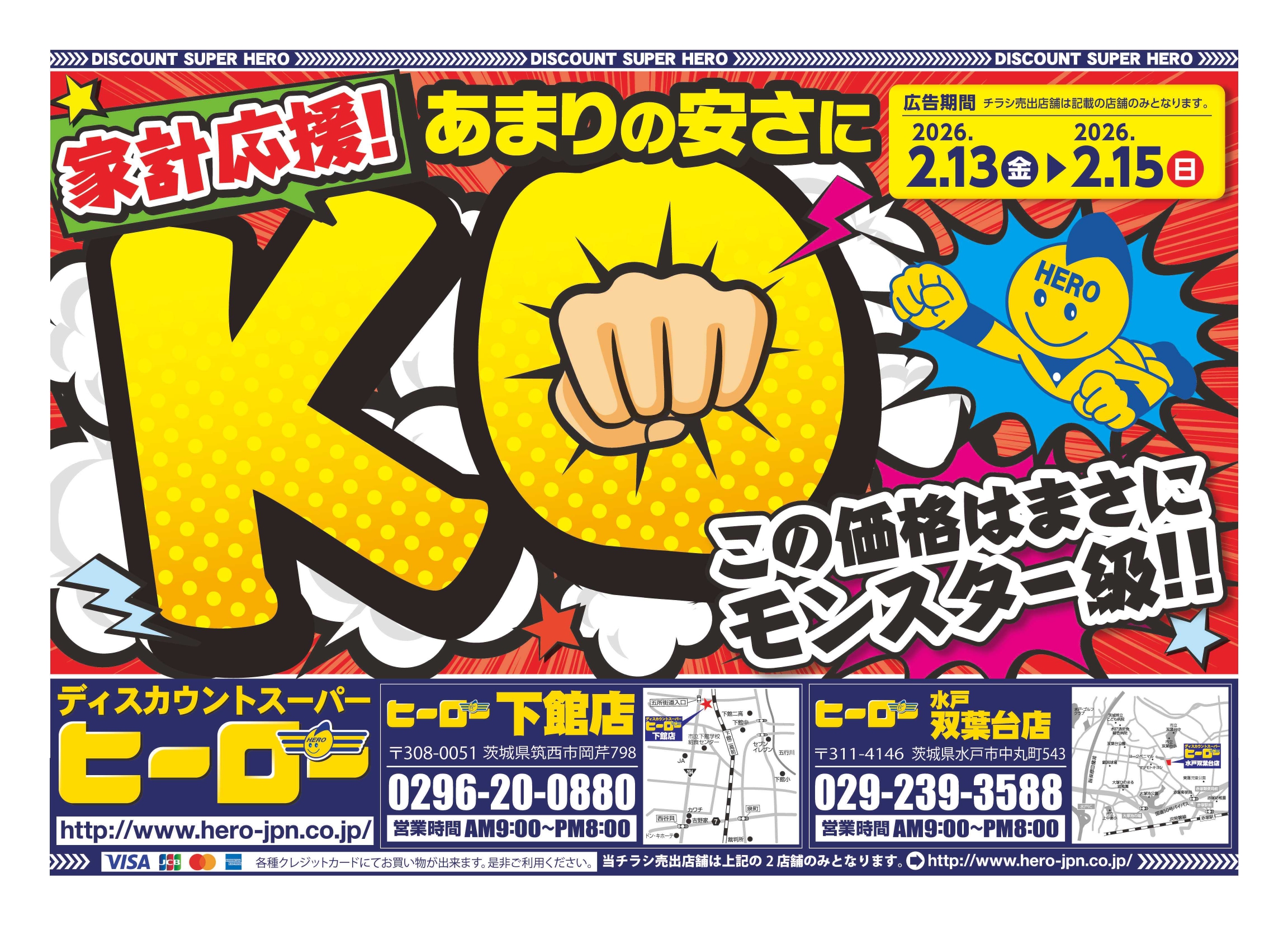 「家計応援!あまりの安さにKO!」1月13日(金)~1月15日(日) ヒーロー下館店・水戸双葉台店・笠間店にて開催!