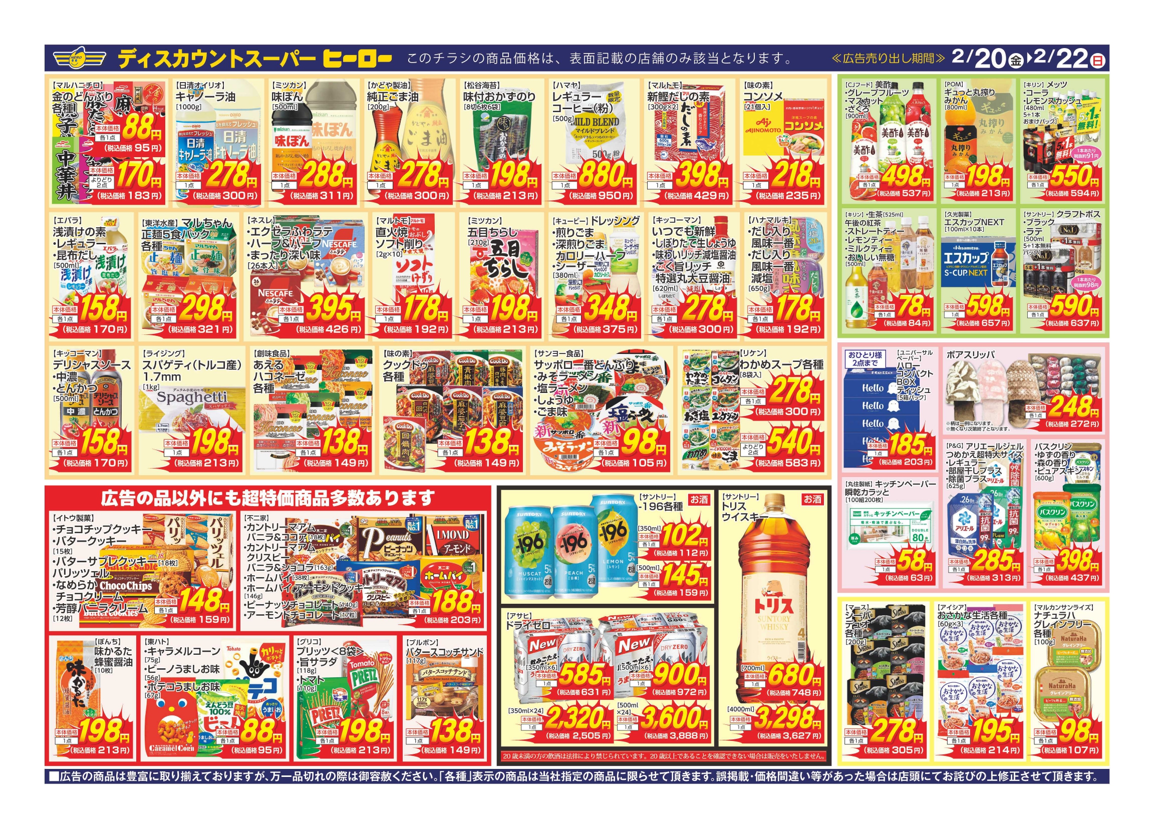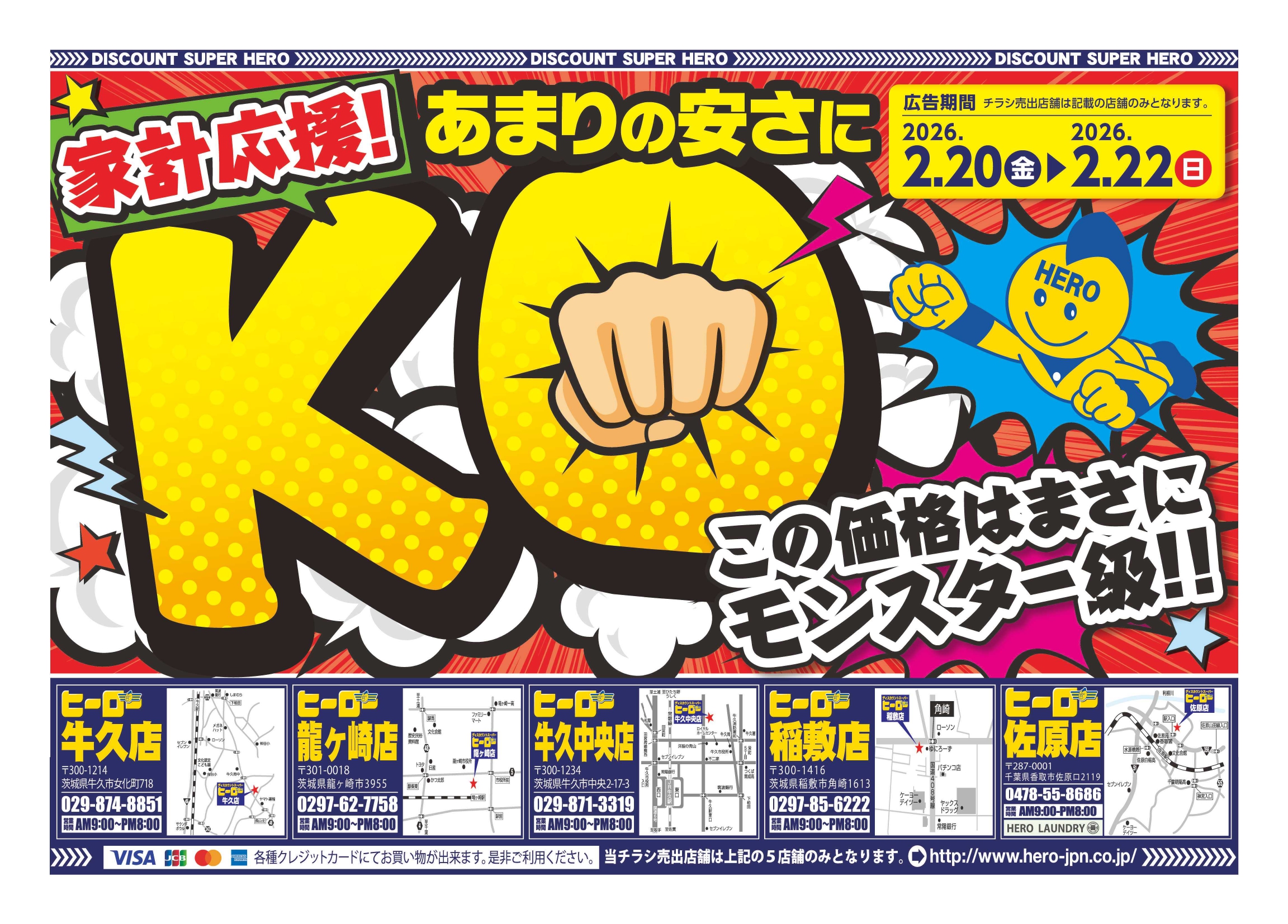 「家計応援!あまりの安さにKO!」2月20日(金)~2月22日(日) ヒーロー牛久店・牛久中央店・龍ケ崎店・稲敷店・佐原店・笠間店にて開催!