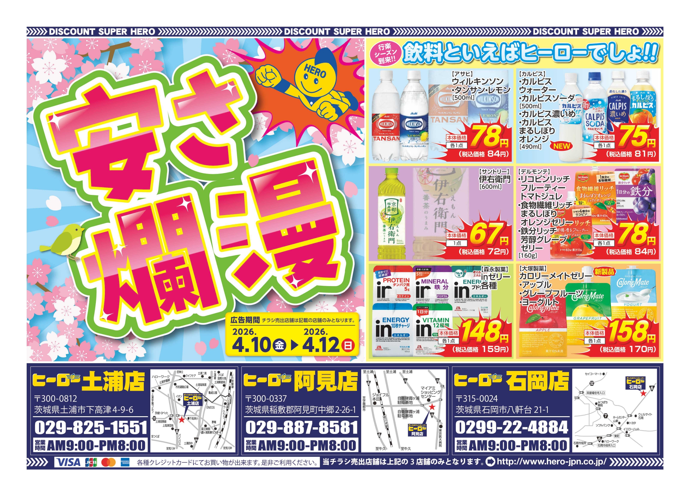 「安さ爛漫」4月10日(金)~4月12日(日) ヒーロー土浦店・阿見店・石岡店・つくば店にて開催!
